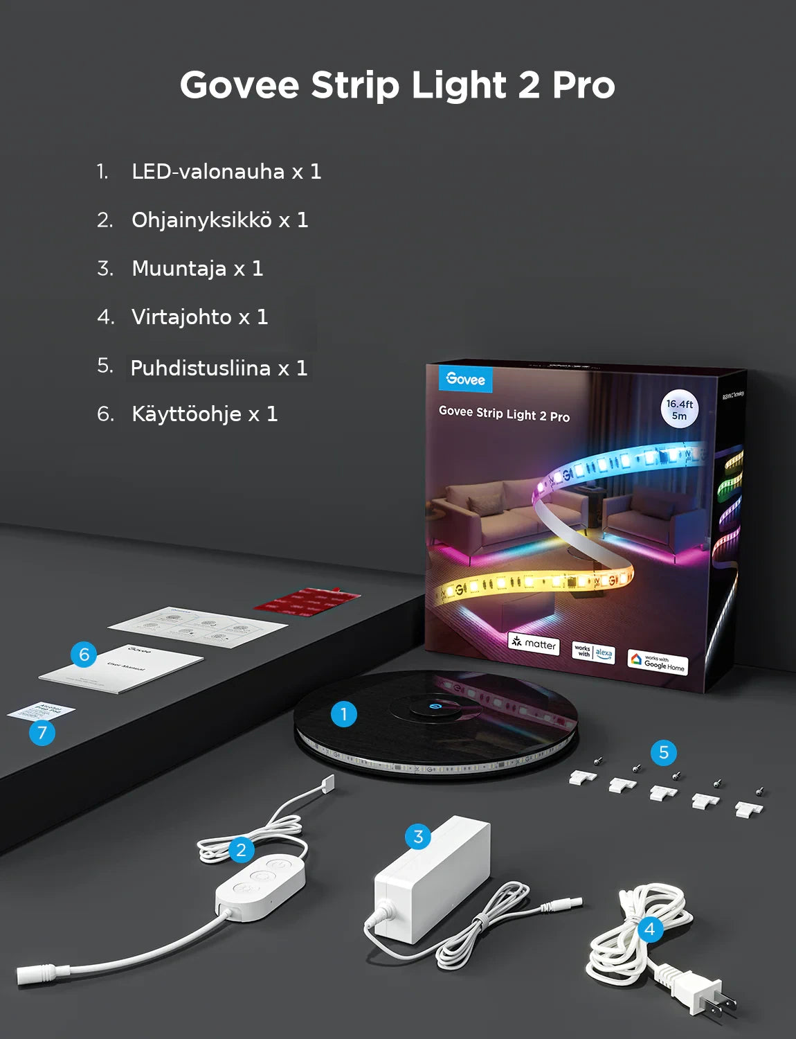 - DIY-ominaisuudet henkilökohtaiseen hallintaan: Mukautettavissa ja leikattavissa olevissa LED-nauhoissa on 10 segmenttiä joka metrillä, yhteensä 16 miljoonaa asetettavaa väriä.